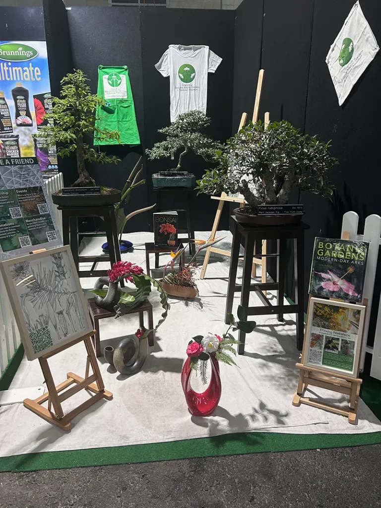We have a half sized space and decided to only have a static display this year.  The approval to have bonsais from the collection at the Brisbane Botanic Gardens, Mt Coot-tha was a major step in deciding the content of the display.  A special thank you to Prue McGruther, the Curator and Perry Naumann, the Gardens supervisor and Chris, the Gardener looking after the Bonsais, for all your help and attention.  On top of this Bimer Bonsai Group members agreed to attend to water the plants.  Every 3 or 4 days the Bonsais will be changed to ensure their growth is not compromised.